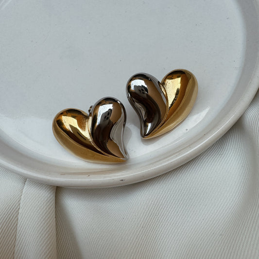 Arete corazón chunky bicolor