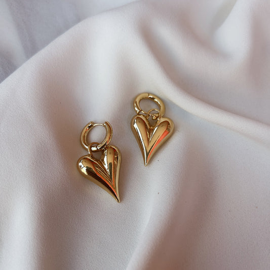 Aretes corazón largo